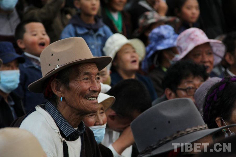 城市另一處地標(biāo)羅布林卡同樣人群涌動(dòng),摩肩接踵。這里,愛戲的觀眾早早在舞臺(tái)前擺上了板凳,甚至帶來了牦牛肉、甜茶,準(zhǔn)備享受一個(gè)愜意的假日。雪民間藏戲隊(duì)演出《朗薩雯蚌》,戲劇沖突曲折跌宕,人物演繹生動(dòng)鮮活,不時(shí)引起觀眾陣陣大笑或掌聲。