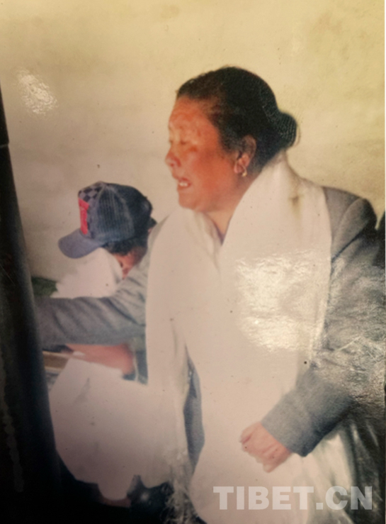 這張照片是我妻子,那時(shí)候大概30歲左右,是用新買的相機(jī)拍的。這衣服當(dāng)時(shí)也很流行,是拉薩女性的服飾。好像是在過(guò)年期間拍的,背景是我家在舊搶古村的房子。這個(gè)房子是我們倆結(jié)婚時(shí)就住著的,大概住了15年左右。那時(shí)候開了茶館和朗瑪廳,條件還不錯(cuò),大家都叫我西總。舊村旁邊有條河流,特別是現(xiàn)在草場(chǎng)變好后河水上漲,所以整個(gè)舊村都拆除搬遷了,并在原址上種了柳樹。