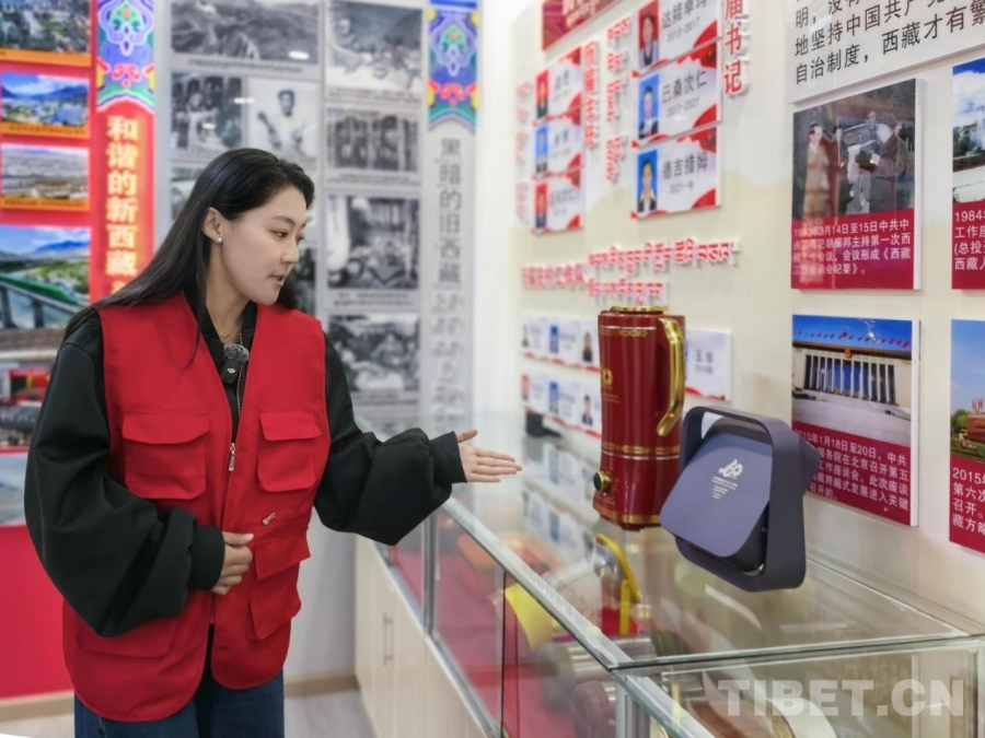 在社區(qū)回憶館內(nèi),有一排展柜精心展出了歷年來(lái)中央代表團(tuán)贈(zèng)予西藏各族各界干部群眾的禮物。從西藏自治區(qū)成立三十周年時(shí)的鐘表,到西藏自治區(qū)成立六十周年時(shí)的全自動(dòng)酥油茶壺,德吉措姆說(shuō)這些禮物滿載著黨中央對(duì)西藏各族群眾深情厚誼,每一件禮物都是當(dāng)時(shí)各族群眾日常生活所切實(shí)需要的,禮物的變化也見(jiàn)證著西藏各族群眾生活的變化。