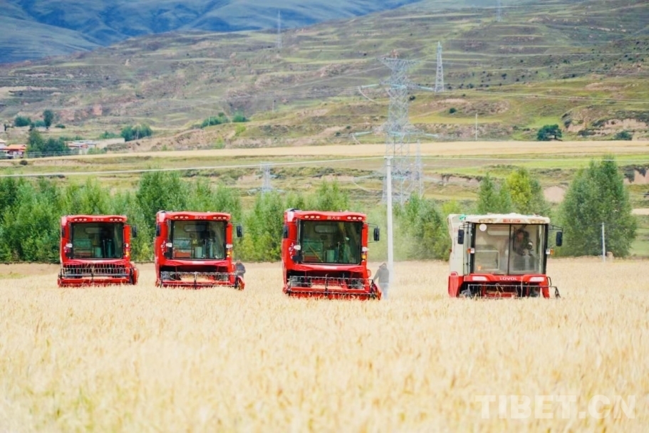 據(jù)了解,目前,甘孜縣全縣200余臺收割機正搶抓農(nóng)時,秋收進度已完成5%,預(yù)計9月中旬全面結(jié)束。(中國西藏網(wǎng) 記者/龍真多吉 供圖/甘孜縣委宣傳部 甘孜縣融媒體中心)