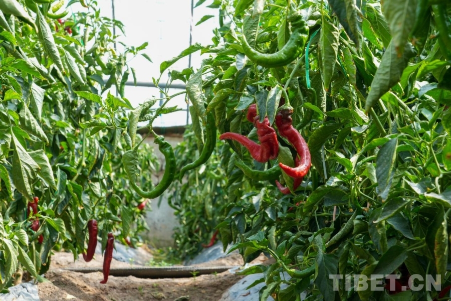 圖為噶爾縣生態(tài)農(nóng)業(yè)產(chǎn)業(yè)園區(qū)的溫室大棚內(nèi)種植的龍椒 攝影:邊子捷