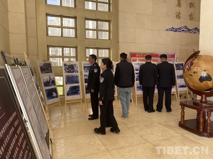 圖為吉隆海關(guān)緝私分局組織民警參觀主題圖片展 攝影:肖富貴