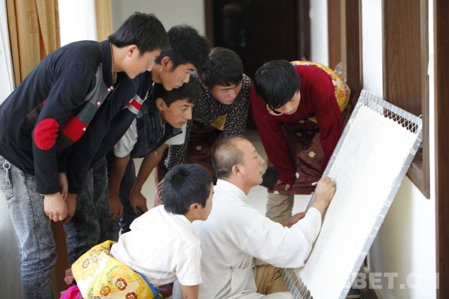 在這次活動(dòng)中,我接觸到了眾多唐卡大師,他們宛如藝術(shù)殿堂中的大師級(jí)工匠,各自散發(fā)著獨(dú)特的光芒。眾多唐卡畫(huà)師里面,給我印象深刻的是娘本。為了了解娘本社會(huì)公益和愛(ài)心助學(xué)的事情,今年八月份我們?nèi)ニ漠?huà)院拜訪(fǎng)。
