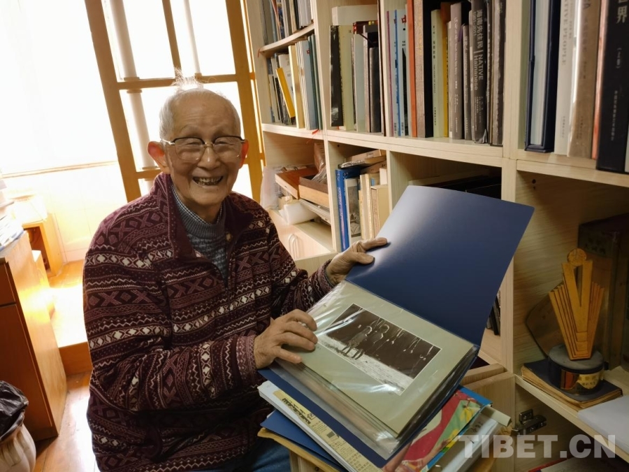 3月21日,我懷揣相冊,專程登門拜訪丁遵新先生。來到丁先生家,一壁字畫,滿屋書香。92歲高齡的先生,依舊精神矍鑠,思維敏捷。我說明來意,攤開相冊,請先生辨認(rèn)這組西藏照片是否出自他手?先生凝視著照片,一時語塞,說:“當(dāng)年湖北團(tuán)只有我一名攝影記者,這些相片肯定是我拍的?!奔又?,老先生進(jìn)到書房翻騰了好久,終于又找出兩張當(dāng)年的西藏照片,其中一張為罕見彩色印刷品,加上我母親保存的,總計12幅。