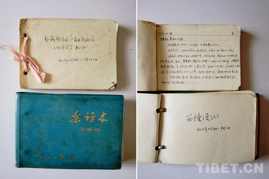 梳理完這些親手拍的片子,丁先生突然想起,他當(dāng)年赴藏寫有日記,還保存著,我大為驚訝,本能地意識到這是極珍貴的檔案資料。先生又翻書柜,找出個小本子,上面依時間順序,密密麻麻地記載著湖北團(tuán)隊幾乎每天的活動。真是難得一見的寶貝呀!經(jīng)先生同意,筆者對日記逐頁拍照,帶回家研究。