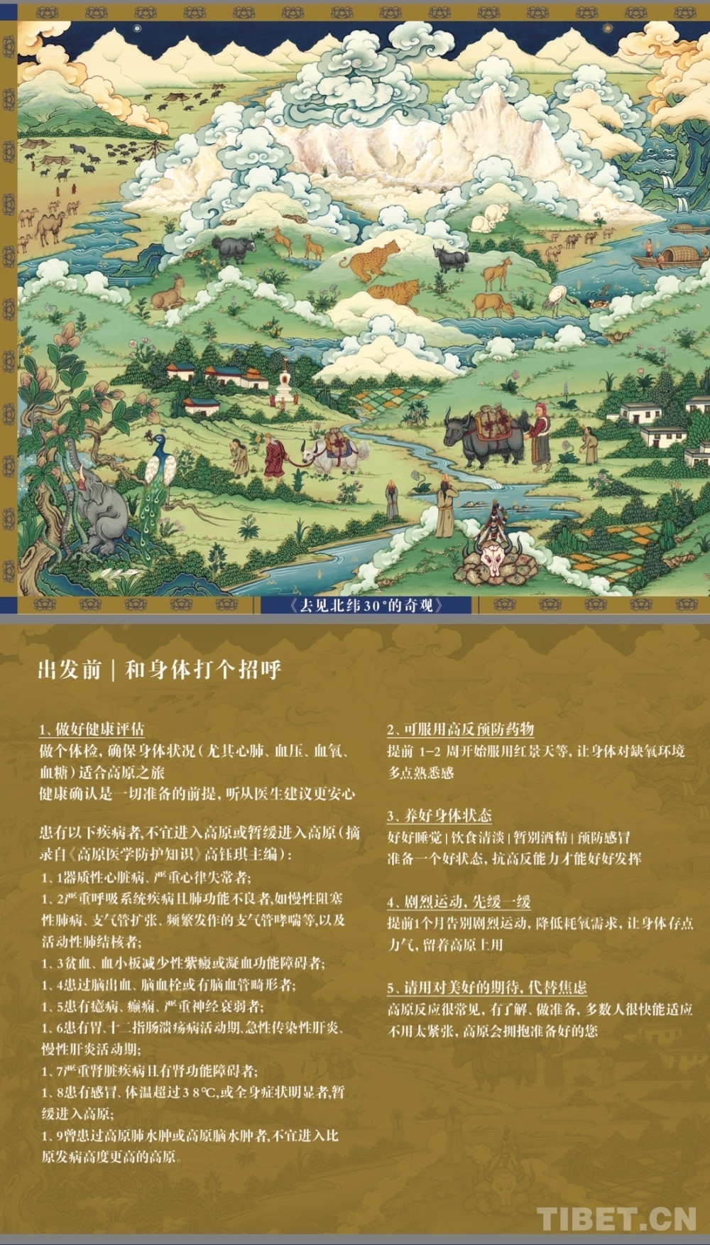 這場(chǎng)來(lái)自雪域高原的特別展覽,是一本《進(jìn)藏健康科普指南》的濃縮。該指南以“守護(hù)生命”為主題,由西藏企業(yè)奇正藏藥發(fā)起,西藏非物質(zhì)文化遺產(chǎn)勉唐畫(huà)派代表性傳承人曲水·旦增精心創(chuàng)作的,是首份集西藏非遺唐卡藝術(shù)與進(jìn)藏健康科普實(shí)用功能為一體的手冊(cè),正在線上線下免費(fèi)長(zhǎng)期發(fā)放中。