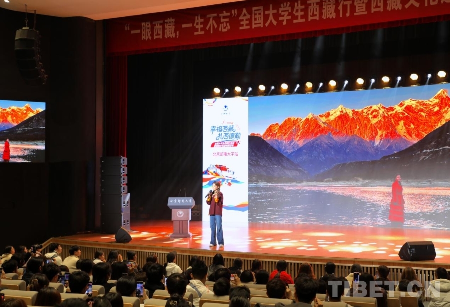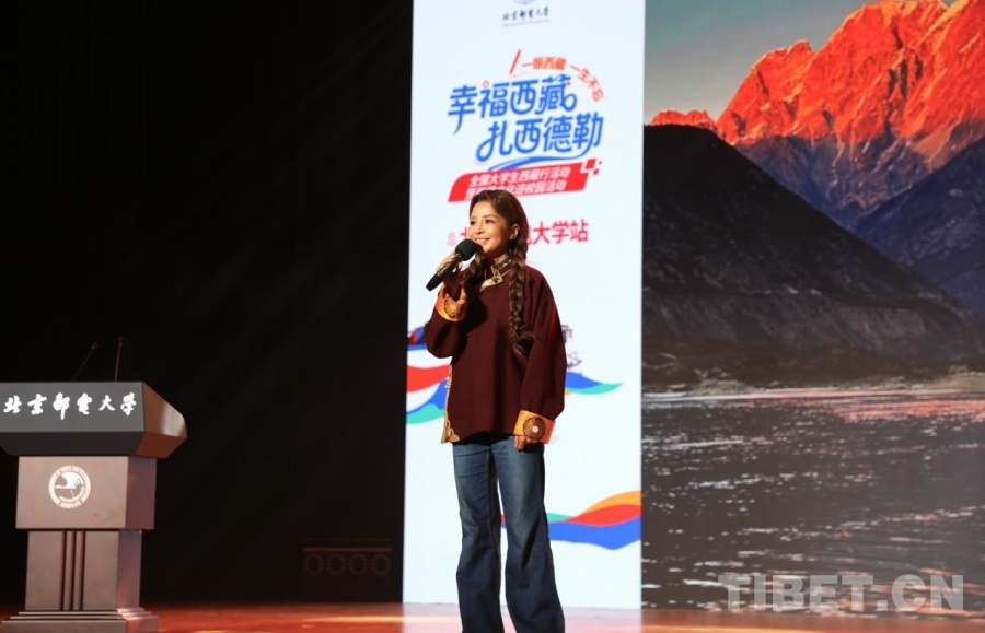 中國西藏網(wǎng)訊 “方程式是造物主獻給人類的詩篇,……每一個都給心里莊嚴(yán)感、靈魂感、畏懼感,你在西藏都能感受到這種(感覺)?!痹诒本┼]電大學(xué)科學(xué)會堂的舞臺上,中央廣播電視總臺主持人朱迅引用楊振寧先生的話,闡述了什么是她心中的西藏。10月30日,“一眼西藏,一生不忘”全國大學(xué)生西藏行暨西藏文化進校園活動走進了北京郵電大學(xué)。活動邀請朱迅作為分享嘉賓,將她與西藏的故事說與大家聽。