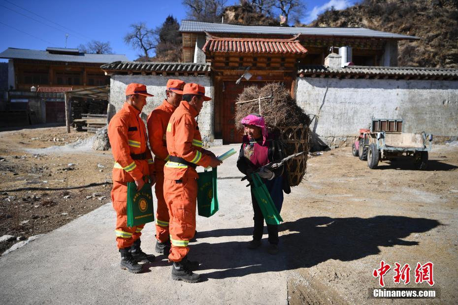 迪慶森林消防員進村進行防火宣傳。中新社記者 劉冉陽 攝