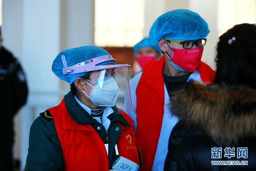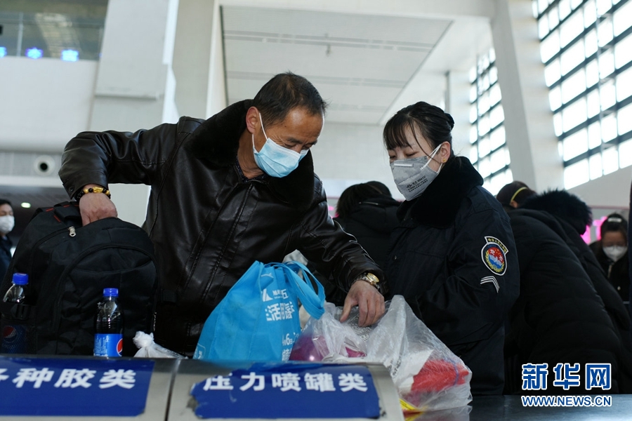 在西寧站進(jìn)站口,工作人員為每名進(jìn)站旅客進(jìn)行測(cè)量體溫。新華網(wǎng) 李俊 攝