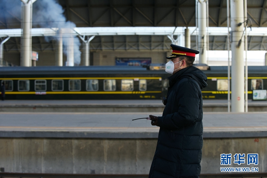 工作人員等待旅客列車進(jìn)站。新華網(wǎng) 李俊 攝