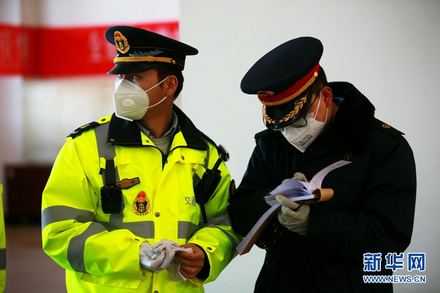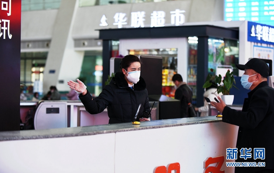西寧客運(yùn)段職工為旅客測(cè)量體溫。新華網(wǎng) 郝寶君 攝
