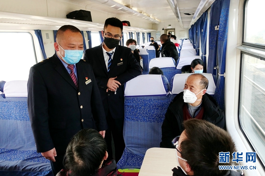 西寧客運(yùn)段職工問詢旅客身體情況。新華網(wǎng) 郝寶君 攝