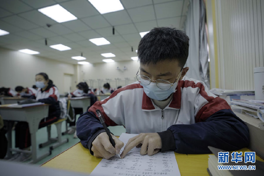 3月14日,海北州第一高級中學(xué)高三年級學(xué)生在教室內(nèi)上課。新華社 吳剛 攝