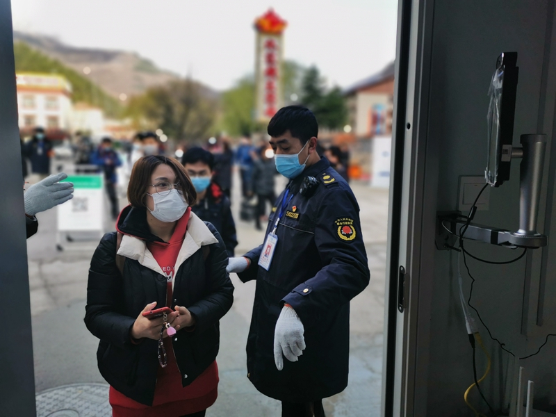 在現(xiàn)場,游客們均按照要求,間隔安全距離排隊(duì)。但與以往排隊(duì)入園不同的是,現(xiàn)場除了驗(yàn)票,工作人員還會檢測體溫并檢查有無佩戴口罩。記者了解到,游客將統(tǒng)一在藍(lán)天停車場臨時(shí)游客中心乘坐觀光車進(jìn)入景區(qū),且全程必須佩戴口罩,保持安全距離,并服從景區(qū)檢測點(diǎn)體溫檢測等。景區(qū)對未持身份證件和未按規(guī)定佩戴口罩的游客,將按照疫情防控期間相關(guān)規(guī)定,拒絕辦理入園手續(xù)。