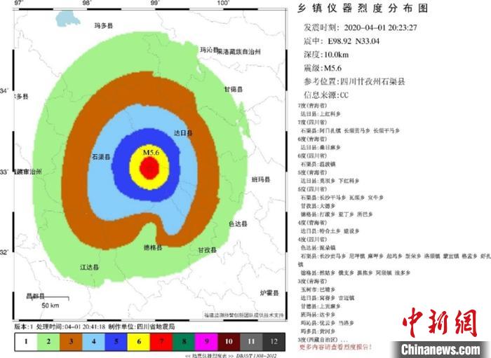 4月1日20時(shí)23分27秒,四川甘孜州石渠縣5.6級(jí)地震發(fā)生后,四川地震烈度速報(bào)與預(yù)警系統(tǒng)震后12秒發(fā)出報(bào)警信息,第一報(bào)5.0級(jí),隨后3分08秒產(chǎn)出自動(dòng)速報(bào),部署于四川省通信管理局、成都鐵路局和四川省地震局等單位的預(yù)警終端發(fā)出報(bào)警,有力支撐了地震應(yīng)急響應(yīng)處置工作。