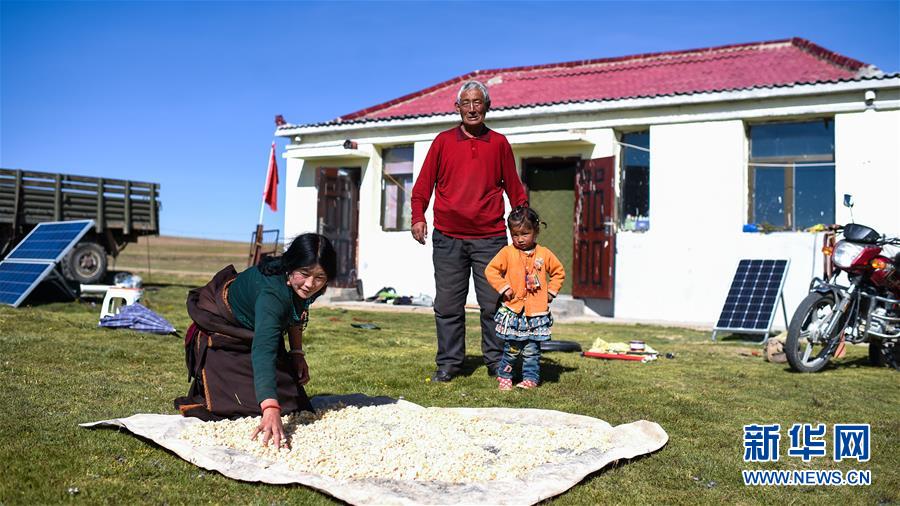 來(lái)自北京的援青醫(yī)生深入牧區(qū)為患者看?。?018年9月7日攝)。 新華社發(fā)