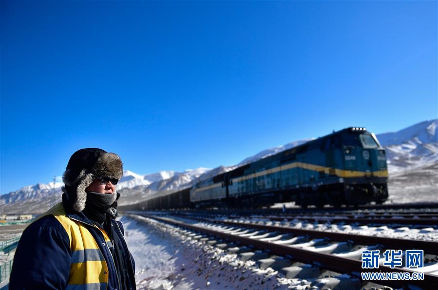 1月11日,在青藏鐵路望昆站,于本蕃在鐵道旁等待列車通過。新華社記者 張龍 攝