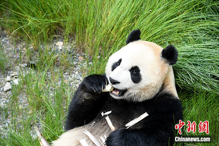 圖為6月19日拍攝的九寨溝熊貓園里的大熊貓。中新社記者 安源 攝