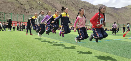 新修的操場(chǎng)是他“套路”到的,400米的標(biāo)準(zhǔn)跑道,比縣里小學(xué)的那個(gè)還好。這原本是鄉(xiāng)里的文體設(shè)施,班瑪多杰軟磨硬泡,央求著領(lǐng)導(dǎo)批準(zhǔn),把這個(gè)操場(chǎng)修到了學(xué)校旁邊。“六一”之后,一場(chǎng)運(yùn)動(dòng)會(huì)就在這個(gè)操場(chǎng)上舉辦了。跑步,拔河,跳遠(yuǎn)……