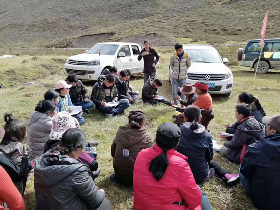 班瑪多杰去牧區(qū)宣傳義務(wù)教育。受訪對(duì)象供圖