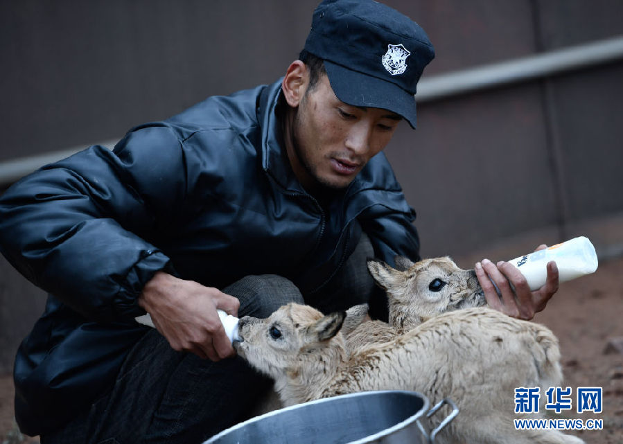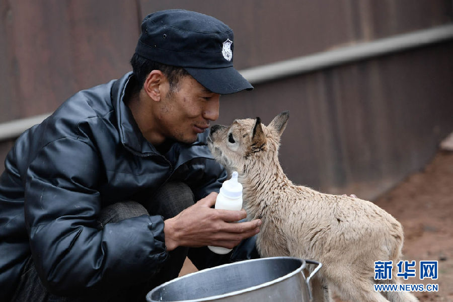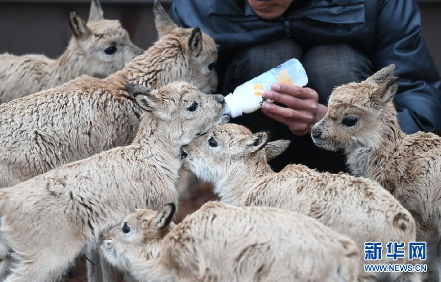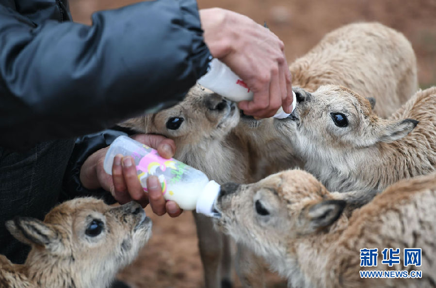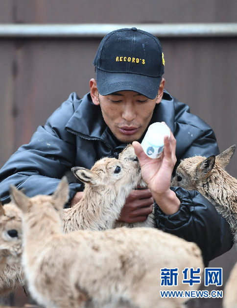 為讓11只藏羚羊幼仔盡快適應環(huán)境、健康成長,卓乃湖保護站安排專人,在特定區(qū)域?qū)ζ溥M行喂養(yǎng)。記者在卓乃湖保護站看到,每日早、中、晚,巡山隊員才文多杰會按時給小藏羚羊喂奶,每只小藏羚羊都有自己的“專用”奶瓶。