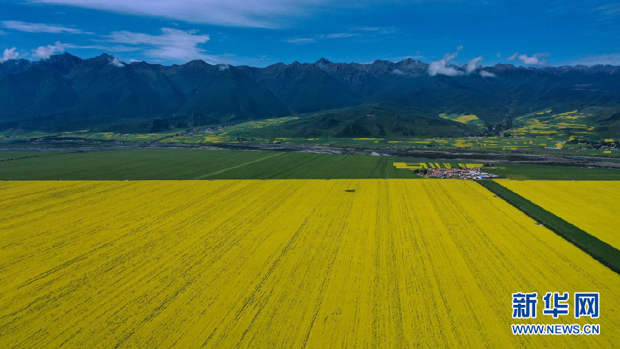 時下正值高原油菜花競相綻放的季節(jié),在青海省海北藏族自治州門源回族自治縣,金黃色的油菜花在高原藍天和云霧映襯下形成一幅壯麗畫卷,吸引游客前來觀賞。