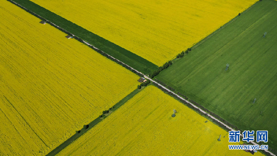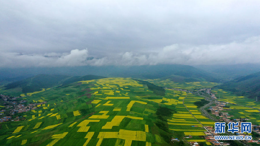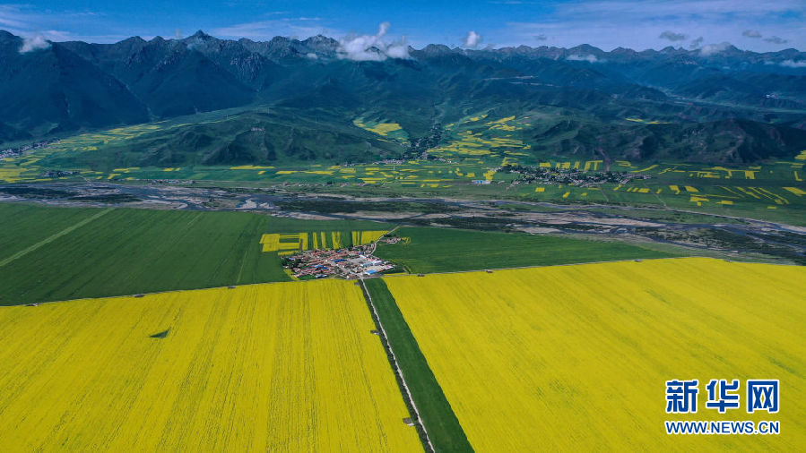 這是7月22日拍攝的門源回族自治縣的油菜花田(無人機照片)。新華社記者 吳剛 攝