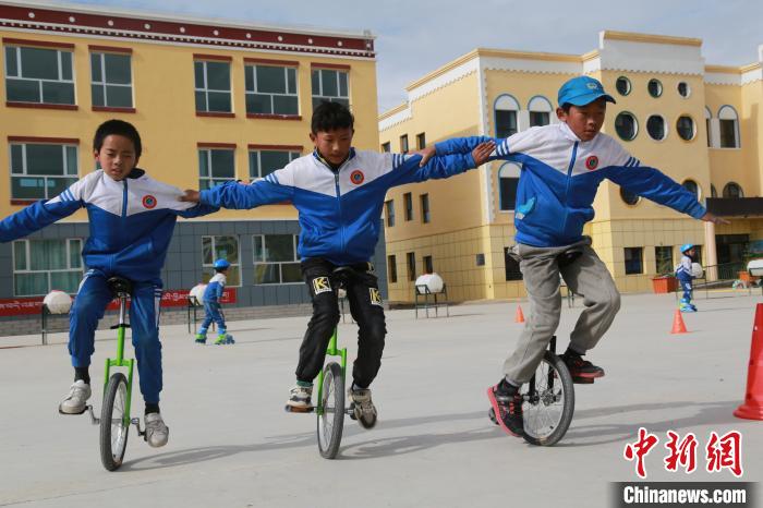 圖為鄉(xiāng)村學(xué)校少年宮的孩子們正在騎獨輪車。才讓本 攝