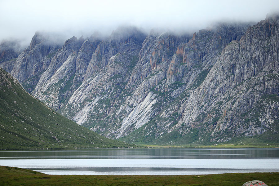 站在年保玉則的湖畔,湖面幽藍(lán)深邃像是一面鏡子,時(shí)間仿佛在這一刻都停止了,寧靜和心靜。望向遠(yuǎn)處,山峰疊巒直插縹緲的白云中;看向身旁,五顏六色的小花鋪滿了湖岸,牦牛低頭飲著湖水,成群的裸鯉游走在湖邊,這是生命的動(dòng)靜。