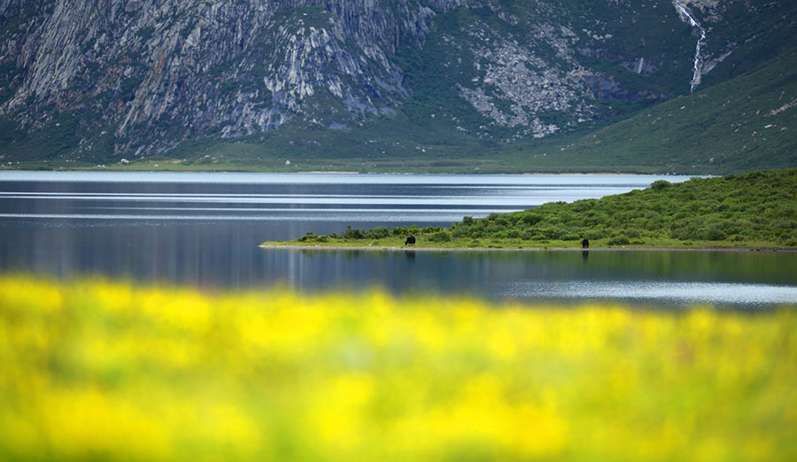 圖為年保玉則保護(hù)區(qū)內(nèi),五顏六色的小花鋪滿湖岸。劉歡 攝