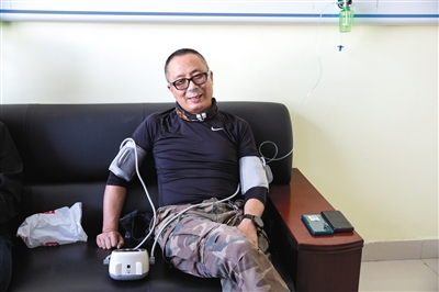 8月12日,玉樹州人民醫(yī)院,李建國(guó)正在接受高原適應(yīng)性治療。