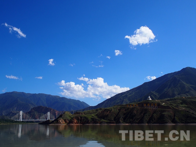 德吉村是尖扎縣2017年建成的易地扶貧搬遷村之一。走進(jìn)這個靜靜依偎在黃河臂彎里的村莊,近處是一排排整齊的藏式院落,遠(yuǎn)處山巒疊翠、水光云影。 黃河從村前流過,收起了奔騰的氣勢,變得平靜和緩,在藍(lán)天和陽光的映照下婉如綠寶石。