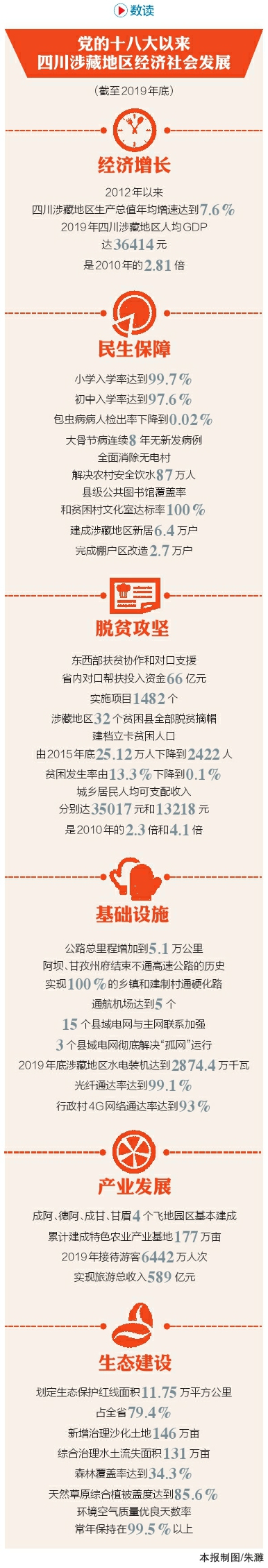 截至2019年底,涉藏地區(qū)32個貧困縣全部脫貧摘帽,建檔立卡貧困人口由2015年底25.12萬人下降到2422人,貧困發(fā)生率由13.3%下降到0.1%,比全國提前一年基本消除絕對貧困和區(qū)域性整體貧困,實現(xiàn)了涉藏地區(qū)人民千百年來的夙愿。