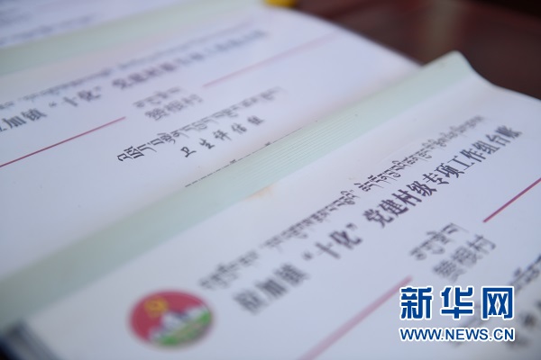 瑪沁縣拉加鎮(zhèn)贊根村“十化”黨建專項(xiàng)工作組臺帳。新華網(wǎng) 潘彬彬 攝
