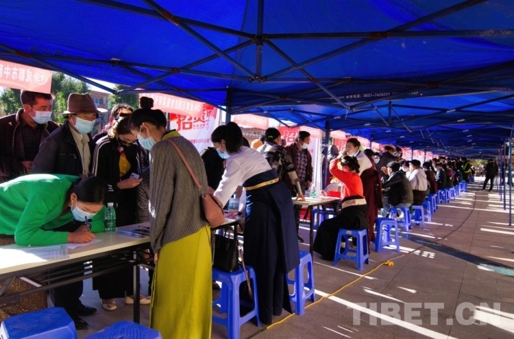 圖為廣東省珠海市對口援助理塘縣2020年就業(yè)扶貧現(xiàn)場招聘會現(xiàn)場