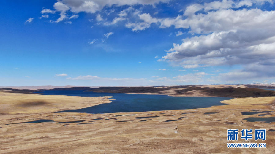10月30日在青海省果洛藏族自治州瑪多縣境內(nèi)拍攝的一處湖泊(無人機照片)。新華社記者 張龍 攝