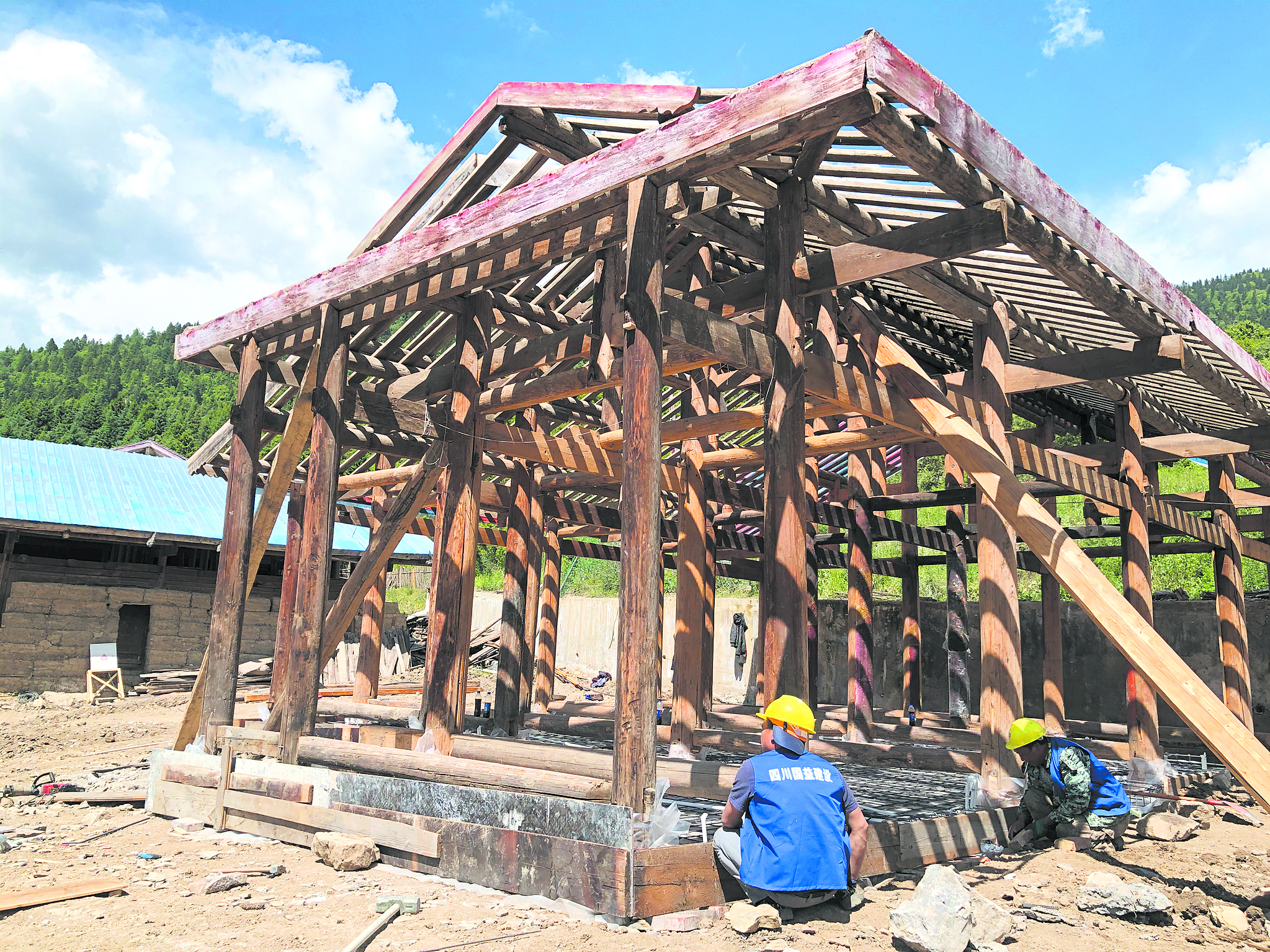 圖片的拍攝地點(diǎn)是四川省阿壩藏族羌族自治州九寨溝縣漳扎鎮(zhèn)上四寨村,圖中現(xiàn)代氣息的落地窗與毛石砌墻木瓦覆頂,藏式文化元素結(jié)合的建筑,是邛崍市第五批對(duì)口支援工作隊(duì)結(jié)合漳扎鎮(zhèn)國(guó)際魅力生態(tài)小鎮(zhèn)建設(shè),引入邛崍市資深文旅企業(yè),在九寨溝縣落地的“首秀”。