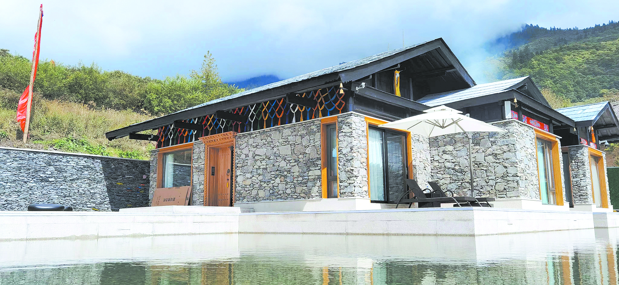 往前方望去,山勢(shì)起伏,云海翻卷,氣象萬千;往身后看,現(xiàn)代氣息的落地窗與石條砌墻灰瓦覆頂,結(jié)合藏式文化元素的新藏寨,在屋前環(huán)繞的水面倒映下,一個(gè)未來網(wǎng)紅打卡地呼之欲出。[詳細(xì)] -