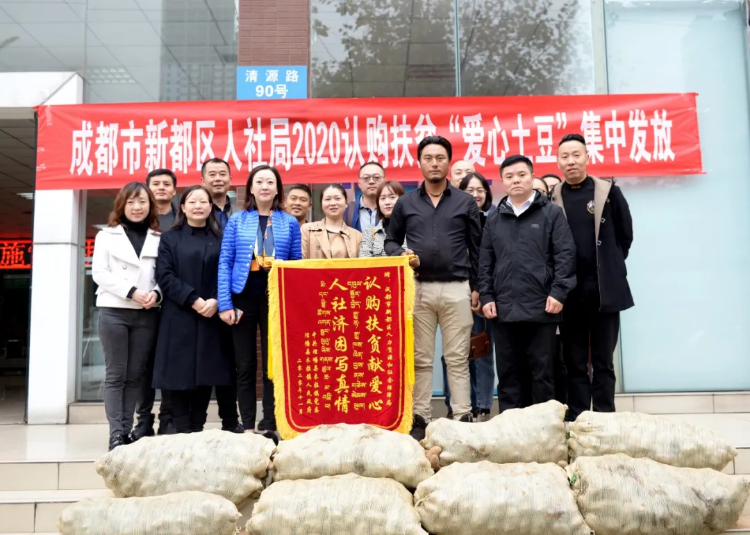 “感謝你們幫助認購3萬余斤土豆……扎西德勒!”11月6日上午8點36分,來自理塘縣木拉鎮(zhèn)卡下村的“愛心土豆”車隊剛在新都區(qū)人社局停車場停穩(wěn),村長降央吉村一個躍步下車,為等候多時的人社局同志送上“認購扶貧獻愛心、人社濟困寫真情”的錦旗。