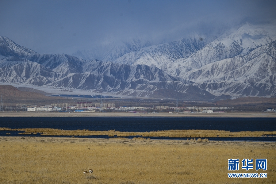 在都蘭湖國家濕地公園內拍攝到的鵝喉羚。(11月21日攝)新華網 潘彬彬 攝