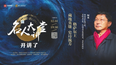 12月14日,由實施四川歷史名人文化傳承創(chuàng)新工程領(lǐng)導(dǎo)小組辦公室主辦、四川日報報業(yè)集團(封面新聞、華西都市報)、四川省圖書館承辦的“名人大講堂”,將迎來重磅嘉賓——四川省作協(xié)主席、著名小說家阿來。他將以“藏地英雄史詩流芳”為主題,為廣大讀者解讀傳奇人物格薩爾王。這也是繼2018年12月10日阿來首登“名人大講堂”帶來《東坡在黃州》之后,第二次登上“名人大講堂”。時間流轉(zhuǎn),恰好一年過去,從蘇東坡到格薩爾王,阿來的講述值得聆聽。