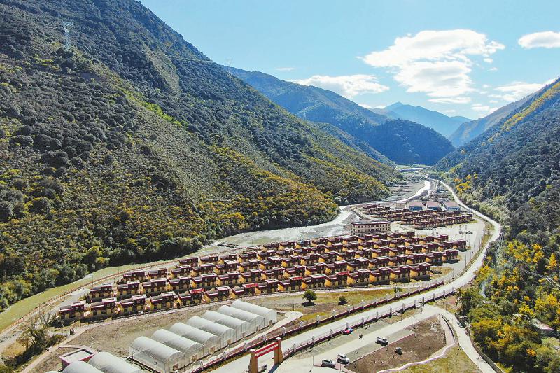 10月18日,俯瞰白玉縣蓋玉鎮(zhèn)山巖村易地扶貧搬遷點(diǎn)。 四川日?qǐng)?bào)全媒體 楊樹(shù) 攝