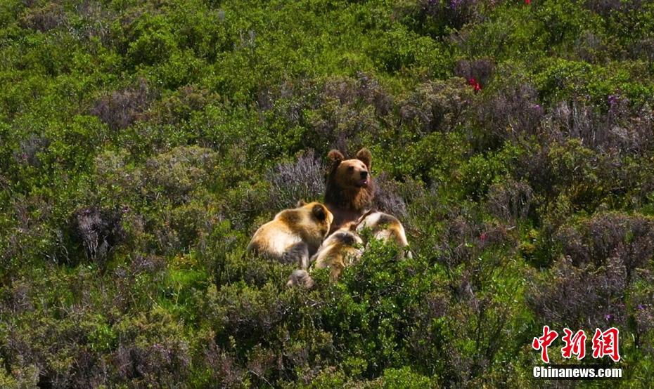 在四川省甘孜藏族自治州石渠縣蒙宜鎮(zhèn)蒙格村附近一處水草豐茂的山坡處拍攝時(shí),偶然發(fā)現(xiàn)一只棕熊媽媽曬著陽(yáng)光浴給三只小熊喂奶場(chǎng)景,棕熊媽媽喂奶結(jié)束后領(lǐng)著小熊寶寶們緩慢走向大山深處。[詳細(xì)]