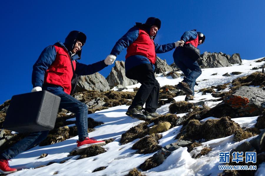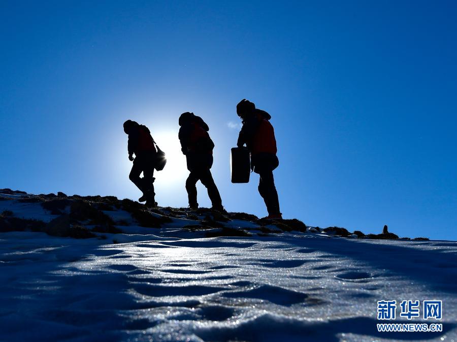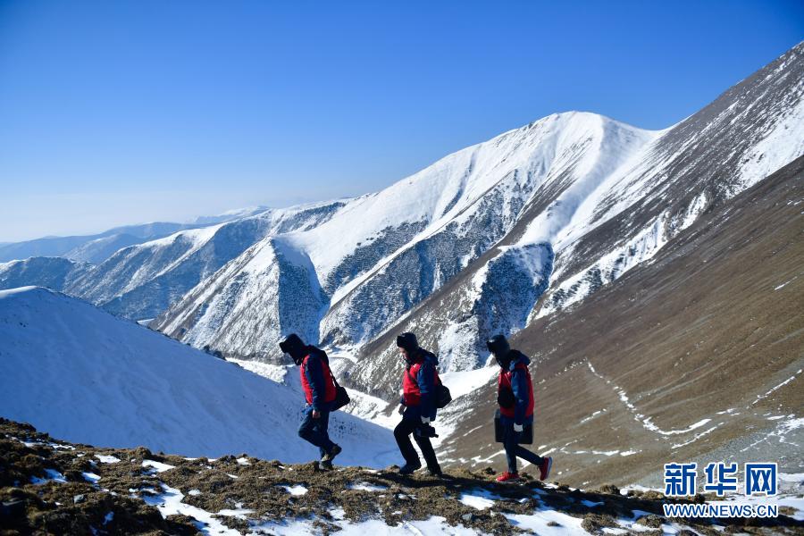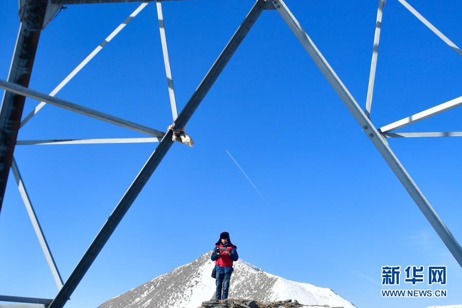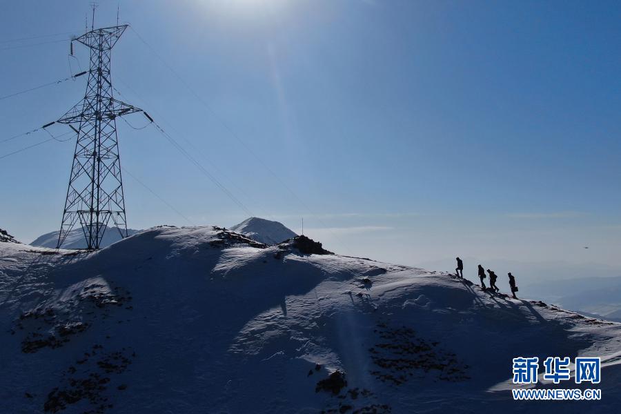 1月21日,國家電網(wǎng)西寧供電公司輸電運(yùn)檢中心運(yùn)檢人員在登山巡檢。新華社記者 張龍 攝