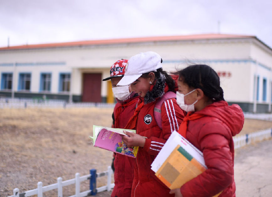 3月16日,索加鄉(xiāng)寄宿小學的一些孩子放學回家。新華社記者 張宏祥 攝
