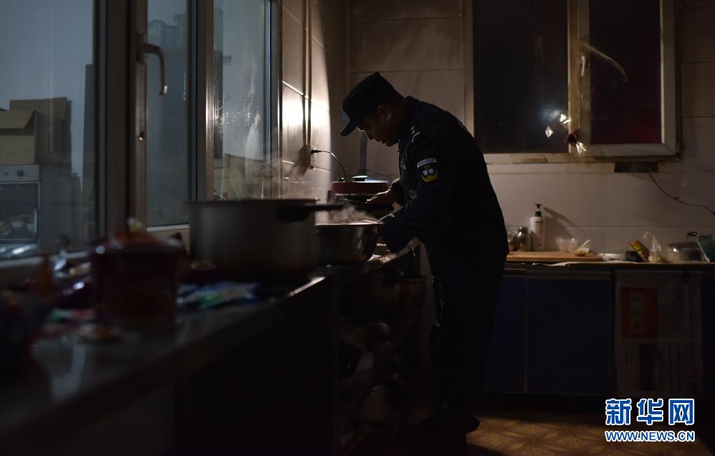 4月19日,袁廣明在可可西里索南達(dá)杰保護(hù)站做晚飯。新華社記者 吳剛 攝