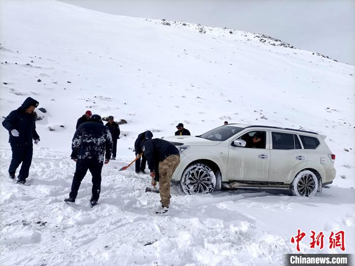 日前,青海省南部的三江源區(qū)域多地降雪,當?shù)厣鷳B(tài)管護人員開啟艱難的風(fēng)雪巡山路。據(jù)悉,青海省玉樹藏族自治州曲麻萊縣約改鎮(zhèn)崗當村的生態(tài)管護人員,野外巡山途中,大雪封山車輛被困。生態(tài)管護人員清雪無果,便徒步抄小道抵達巡護目的地。返程時,當?shù)啬撩裼媚ν熊噷⑸鷳B(tài)管護人員送至車輛旁邊。