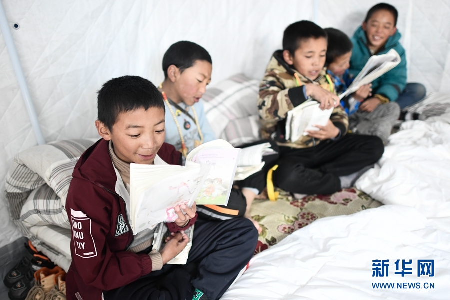 “帳篷里挺暖和,老師們都陪著我們,現(xiàn)在很安心,不覺得害怕?!本拍昙壱话鄬W生扎西東周說。