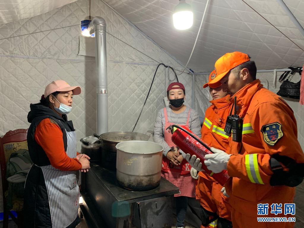 25日,青海瑪多“5·22”7.4級地震災后第四天,瑪多縣城飄起小雪。青海省玉樹藏族自治州消防救援支隊消防員群英尕丁,又來到瑪多縣民族寄宿制中學的安置區(qū)日常巡查。