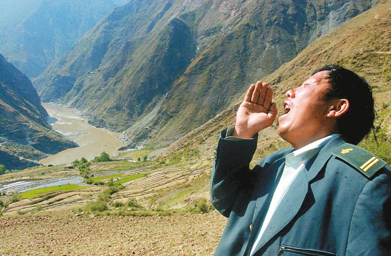 王順友拉開嗓子唱一段山歌,排遣送信路上的寂寞孤獨。四川日報全媒體記者 毛漫丁 攝(資料圖片)